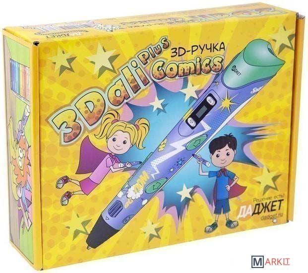 Обновлённая 3Dali Plus Comics с дизайном в стиле комиксов разработана с учётом предпочтений наших маленьких клиентов. Это качественная и простая в освоении 3D-ручка с классным принтом, упакованная в яркую коробку со всем необходимым для творчества - идеальный подарок для ребенка! Начните свое приключение в мире 3D-рисования!