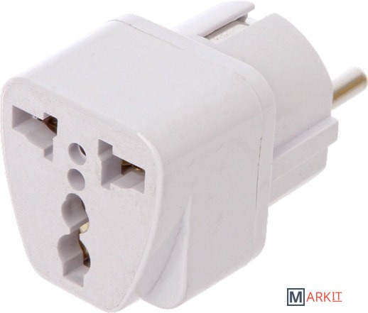 Переходник с европейском вилки на вилку российского типа с заземлением.
