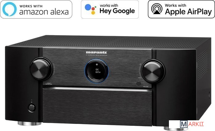 Marantz SR7015 это 9.2-канальный AV-ресивер, соответствующий сертификату IMAX Enhanced, благодаря чему достигается очень высокое качество картинки и звука (используется специальная версия DTS-кодека), сравнимое с качеством в IMAX-кинотеатрах. Поддерживаются все актуальные форматы 3D-звука. Ресивер поддерживает видео 8К 60 Гц, включая 8К-апскейлинг, с поддержкой HDR и 4K на частоте 120 Гц.В модели Marantz SR7015 установлены HDAM-модули усиления и используется обратная токовая связь. В результате гарантируется широкий частотный диапазон, впечатляющая скорость нарастания сигнала, отличная детальность и динамика. Ресивер выдает мощность в 125 Вт на каждый канал при 8 Ом, а для конвертации «цифры» в «аналог» использует 32-битный ЦАП AK4458, поэтому по локальной домашней сети и по USB доступно воспроизведение Hi-Res-аудио, в т. ч. DSD 2,8/5,6 МГц.AV-ресивер Marantz SR7015 оснащен 2-диапазонным Wi-FI, Bluetooth и поддерживает функцию AirPlay2. Имеется доступ к экосистеме HEOS, позволяющей организовать мультирум-инсталляцию и управлять ею через одно приложение, которое дает возможность передавать аудиофайлы локальной библиотеки и потоковых сервисов на соответствующие HEOS-компоненты без использования кабелей. Поддерживаются онлайн-сервисы Deezer, TuneIn, Spotify Connect, TIDAL, Amazon Music и др., а для управления моделью служит не только пульт ДУ, но и фирменное приложение, а также голосовой помощник Amazon Alexa.