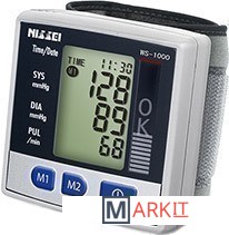 Автоматический тонометр на запястье WS-1000 с индикацией аритмии и возможностью сохранения даты и времени измерения.Модель укомплектована уникальной манжетой M-Cuff, которая разработана и запатентована компанией Nihon Seimitsu Sokki. Манжета обеспечивает считывание пульсовой волны сразу с двух артерий запястья, что повышает точность измерения. На приборе установлен специальный индикатор для определения правильного положения руки при измерении. При правильном положении руки, когда манжета находится на уровне сердца, на индикаторе появляется значок "ОК".Тонометр WS-1000 оснащен индикатором аритмии, который не только сообщает о наличии нерегулярного пульса, но и позволяет провести измерение с достоверной точностью.Особенности:• Большой 4-строчный дисплей• Индикатор аритмии• Индикатор правильного положения руки при измерении• Два блока памяти по 30 ячеек в каждом + среднее значение• Запатентованная манжета M-Cuff размером 12,5-21,5 см• Дата и время измерения