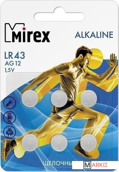 Батарейка Mirex LR43 (AG12) блистер 6 шт. 23702-LR43-E6 Код: 146172