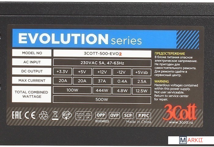 Markit » Блоки питания » Блок питания 3Cott 3COTT-500-EVO2