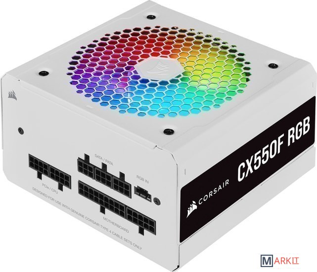 Каждый блок питания CX-F RGB оснащен вентилятором 120 мм с яркой подсветкой и восемью светодиодами RGB с возможностью индивидуальной настройки, которые создают прекрасное направленное освещение для компонентов системы.Нажмите кнопку, предусмотренную на задней панели, подключите устройство к контроллеру подсветки CORSAIR iCUE RGB (приобретается отдельно) или используйте встроенное в материнскую плату средство управления ARGB, к которому прилагается адаптерный кабель. Управляйте подсветкой по своему вкусу.Блок питания CX-F оснащен вентилятором RGB 120 мм с функциями точной настройки и специальной кривой управления, которая позволяет удерживать уровень шума на минимальных значениях.