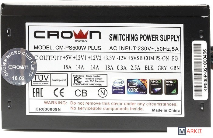 Markit » Блоки питания » Блок питания CrownMicro CM-PS500W Plus
