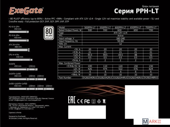 Markit » Блоки питания » Блок питания ExeGate 650PPH-LT 80 Plus EX282046RUS-S