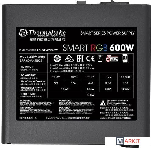 Markit » Блоки питания » Блок питания Thermaltake Smart RGB 600W (230V) SPR-600AH2NK-2
