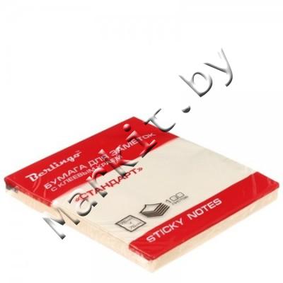 Бумага для заметок с липким краем Berlingo, 76 x 76 мм, 1 блок x 100 л., желтая пастель Код: 31100