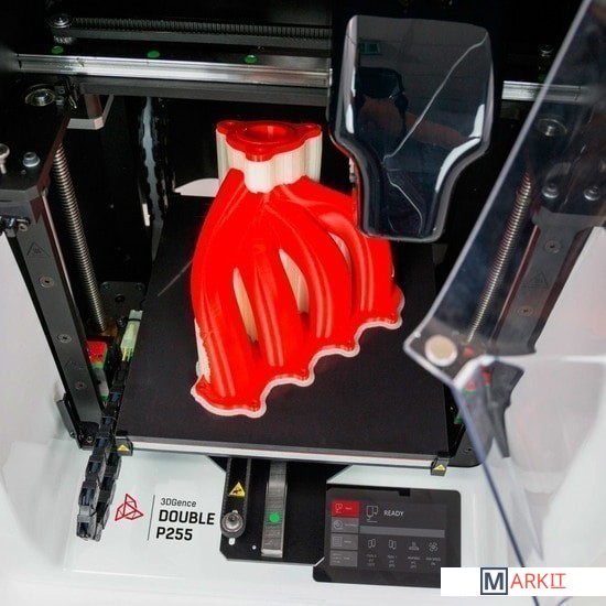 3D-принтер 3DGENCE DOUBLE P255 имеет двойной экструдер. Это обеспечивает возможность печати с использованием двух материалов — основного и поддерживающего. DOUBLE P255 применяется в профессиональной печати. Данный 3D-принтер был разработан для создания высококачественных и детальных моделей, благодаря возможности использования растворимого материала поддержки.