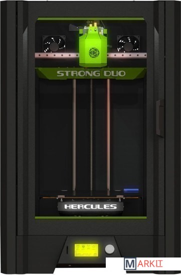 Hercules Strong Duo умеет печатать двумя разными материалами одновременно, автоматически калибруется и контролирует подачу пластика. Новая электроникаи механика позволяют печатать точно и бесшумно.