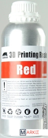 Markit » Расходные материалы для 3д принтера » Фотополимер Wanhao Water Washable 1000 мл (красный)