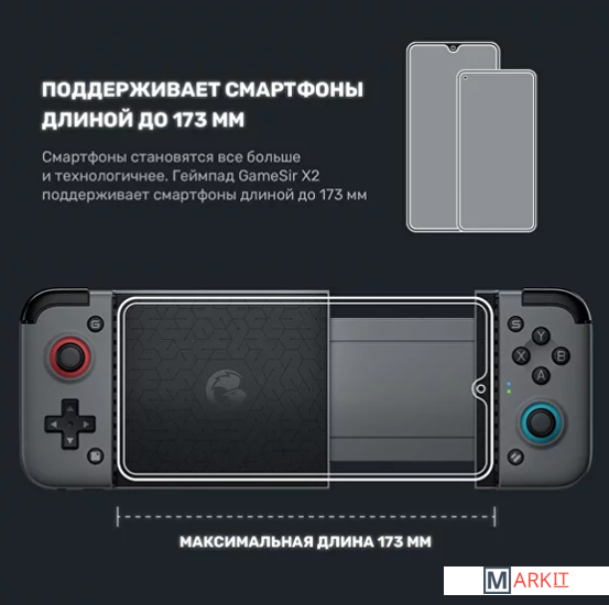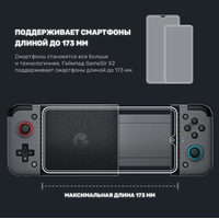GameSir X2 Bluetooth – это мобильный игровой контроллер, который с лёгкостью превратит ваш смартфон в портативную игровую консоль. Совместим со смартфонами длиной до 173 мм на Android и iOS. Благодаря компактному и эргономичному форм-фактору, ёмкому аккумулятору и удобному кейсу геймпад станет вашим компаньоном в любой точке мира. Играйте в игры MFi, Apple Arcade или в облачных сервисах как профессиональные игроки с помощью быстрых кнопок на микромеханических переключателях и стиков киберспортивного уровня. Сохраняйте кнопкой screenshot самые яркие и триумфальные моменты, чтобы поделиться ими с друзьямиСМАРТФОНЫ ДЛИНОЙ ДО 173 ММ