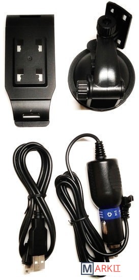 Комплект поставки - USB-кабель- Автомобильная зарядка- Автомобильный держатель для крепления на лобовое стекло- Инструкция- Гарантийный талон