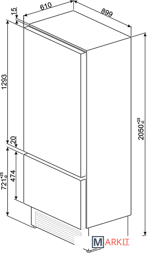 встраиваемый холодильник, большой холодильник, высокий холодильник |