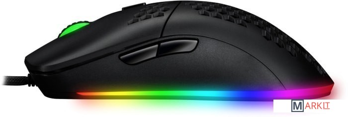 По данным исследований профессиональный геймер может перемещать мышь со скоростью до 250 IPS и ускорением до 30 G. Максимальные показатели скорости движения и ускорения корректно считываемые сенсором PIXART 3355 значительно превосходят возможности руки даже профессионального геймера, а значит «сорвать» сенсор будет практически невозможно.Регулировка высоты отрыва (1мм/2мм). Настройка осуществляется кнопкой на нижней части устройства. В зависимости от особенностей геймплея игрок всегда может отрегулировать, на какой высоте над поверхностью мышь перестает ее считывать. Минимальные значения позволяют возвращать мышь в нужную точку коврика без смещения курсора. При использовании фирменного программного обеспечения всегда можно произвести тонкую настройку уровней разрешения сенсора от 100 DPI до 32000 DPI с шагом в 100 DPI.Конструкция корпуса мыши обеспечивает ее легкость и управляемость. Кроме того, отверстия в корпусе обеспечивают прекрасную вентиляцию, чтобы ладонь меньше потела. Для чистки мыши можно использовать баллончик со сжатым воздухом.Тщательно обработанные ножки из тефлона обеспечивают оптимальное скольжение на всех классических игровых поверхностях.Подсветка по контуру мыши работает в 9 различных режимах. Переключение режимов осуществляется одновременным нажатием боковой кнопки "вперед" и колеса прокрутки. Контурную подсветку можно настраивать по своему вкусу в программном обеспечении, а также полностью отключить. Колесико и логотип оснащены однотонной подсветкой, которая меняется и настраивается в зависимости от уровней разрешения сенсора.Программное обеспечение позволяет тонко настраивать устройство, а также записывать макросы для всех кнопок мыши.