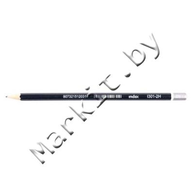 Карандаш чернографитный Index, твердость грифеля 2Т, корпус черный, с декоративным наконечником Код: 31387