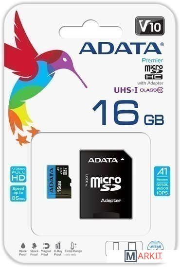 Markit » Карты памяти » Карта памяти A-Data Premier AUSDH16GUICL10A1-RA1 microSDHC 16GB (с адаптером)