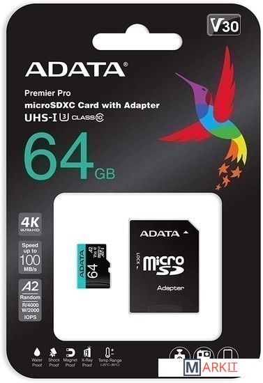 Markit » Карты памяти » Карта памяти A-Data Premier Pro AUSDX64GUI3V30SA2-RA1 microSDXC 64GB (с адаптером)
