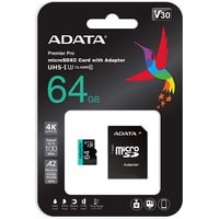 Карта памяти A-Data Premier Pro AUSDX64GUI3V30SA2-RA1 microSDXC 64GB (с адаптером) Код: 96536