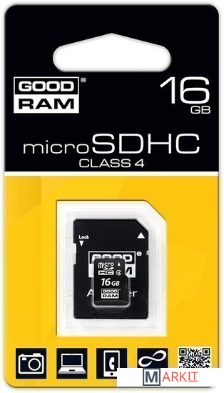 Markit » Карты памяти » Карта памяти GOODRAM microSDHC Class 4 16GB + адаптер (SDU16GHCAGRR10)