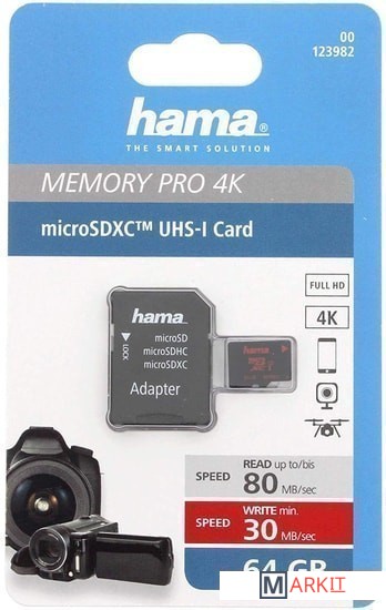 Markit » Карты памяти » Карта памяти Hama 00123982 microSDXC 64GB + адаптер