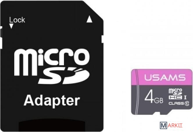 Карта памяти Usams US-ZB115 High Speed TF Card 4GB (с адаптером) Код: 95492