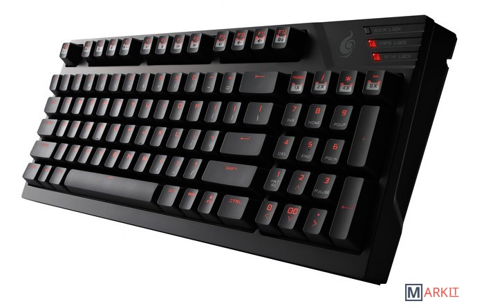 Клавиши имеют 3 варианта подсветки с 5 уровнями яркости. Функция NKRO в режиме USB означает, что все нажатия на клавиши будут выполнены компьютером без пропуска. Стальная пластина в основании клавиатуры придаёт вес, необходимый для предотвращения непроизвольного смещения во время игры. 7 функциональных клавиш дают быстрый доступ к мультимедиа. Полный цифровой блок обеспечивает всем необходимым для выполнения действий, не связанных с играми.Quick Fire TK доступна в трёх вариантах исполнения:SGK-4020-GKCR1 – переключатели CHERRY MX Red – очень низкое сопротивление, линейная обратная связь (без отдачи)SGK-4020-GKCM1 – переключатели CHERRY MX Brown – среднее сопротивление, обратная связь с отдачей (препятствие)SGK-4020-GKCL1 – переключатели CHERRY MX Blue – малое сопротивление, обратная связь с отдачей (клик)