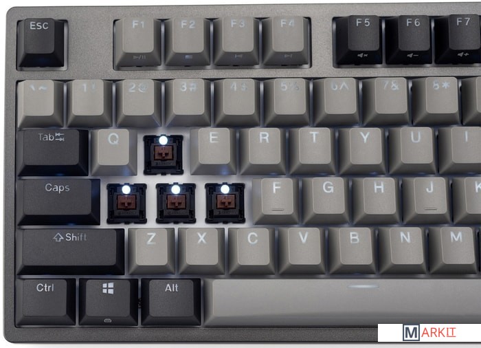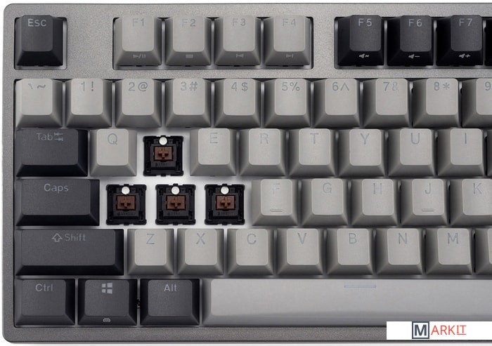 КЛАВИАТУРА БЕЗ КИРИЛЛИЦЫТип: тактильный Сила нажатия: 55 грамм (средние)Длина пути: 4 мм (2 мм до срабатывания)Настраиваемая белая подсветка - Поддерживает 11 режимов, регулировку яркости, скорости и направления анимации.Клавиатура поддерживает сочетания клавиш для регулировки громкости и управления музыкой. Также имеется возможность отключить кнопку Windows.Два кабеля в комплекте - Вы можете использовать как USB Type-C, так и старый добрый USB Type-A.Durgod Zeus Engine позволяет создавать макросы. Можно создать свои мультимедиа, функциональные макросы и многое другое. ПО не поддерживается на Mac OS.Канавки для укладки кабеля - Расположены с обратной стороны клавиатуры и позволяют выводить кабель в трёх направлениях — слева, справа и посередине.Двойные регулируемые ножки предоставляют целых три варианта угла наклона клавиатуры для более комфортной печати, а их прорезиненное дно не даст клавиатуре сдвинуться с места.Позволяет нажимать одновременно неограниченное количество клавиш. Для печати идеально подойдет как 6KRO, так и NKRO, независимо от вашей скорости. Для игр NKRO будет плюсом и неважно, нажимаете ли вы больше 6 кнопок или нет, поскольку, играя в любую игру, вы можете случайно нажать пару лишних клавиш и из-за этого клавиатура может не среагировать на нажатие, которые вы хотели совершить изначально. Осторожно, старые BIOS-ы могут не реагировать на клавиатуру из-за NKRO.
