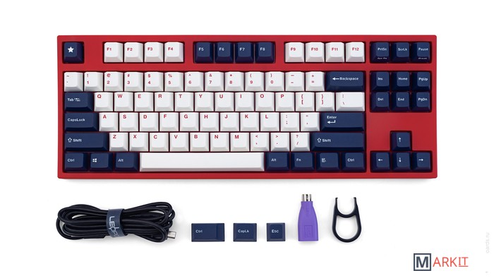 Комплект поставки Клавиатура;Коробка;Защита от пыли;Кабель с велкро застежкой;Кейкап пуллер;Дополнительные клавиши модификаторы Ctrl, CapsLock;Батарейки типа ААА - 2шт.