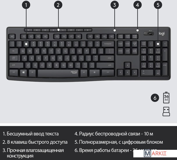 Markit » Комплекты клавиатура и мышь » Клавиатура + мышь Logitech MK295 Silent (черный)