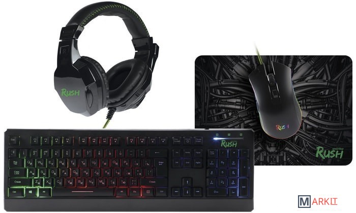 Состав набора клавиатура + мышь с ковриком + наушники