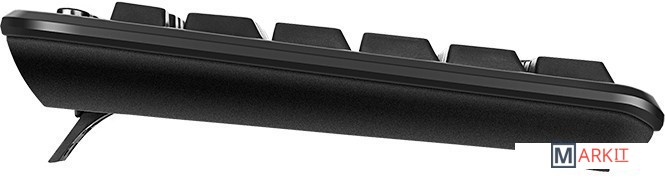 Клавиатура содержит 115 клавиш с приятным мягким ходом. Раскладка стандартная, кнопка Enter — большая «двухэтажная», а Shift — длинная. Любители комфортной классики обязательно это оценят. Равно как и 11 клавиш быстрого доступа, которые делают взаимодействие с ПК намного более эффективным и комфортным. Конечно, на месте и цифровой блок, без которого немыслима работа тех, чья деятельность связана с вычислениями. Да и при выполнении других задач она нередко бывает полезна. Значки на клавиши нанесены хорошо заметной краской, русские буквы выделены красным цветом — сориентироваться можно с первого взгляда.