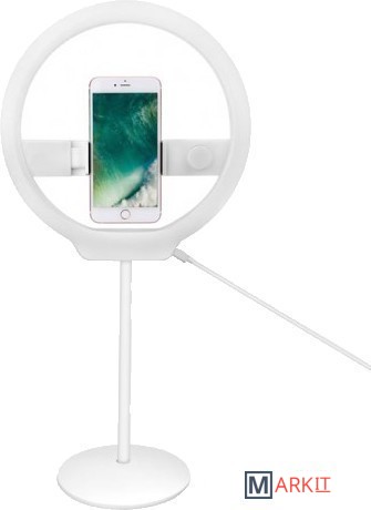 Портативная светодиодная кольцевая лампа.В комплекте идет держатель с гибкой опорой, с помощью которого можно удобно регулировать высоту и угол наклона лампы.Источник питания в комплект поставки не входит.