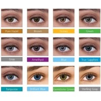 Цветные линзы для тёмных и светлых глаз. Применяется сочетание трёх различных цветов «3 в 1», что дает эффект постепенного изменения цвета глаз от зрачка к внешнему краю радужки.