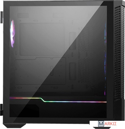 Передняя панель корпуса MPG VELOX 100 серии представляет собой образец практичности и яркого дизайна. Она отлично вентилируется и оснащается двумя красочными полосками адресуемой светодиодной иллюминации ARGB.Для гибкого управления адресуемой подсветкой ARGB корпуса серии MPG VELOX 100 служит приложение MSI Mystic Light.Корпусы серии MPG VELOX 100 поддерживают функцию Insta-Light Loop: пользователь может быстро переключаться между различными режимами работы подсветки нажатием на специальную кнопку.В комплект поставки корпусов серии MPG VELOX 100 входит кронштейн для вертикальной установки видеокарты.В боковой панели имеется вентиляционное отверстие, напротив которого можно установить 2 вентилятора или 240-мм радиатор.Благодаря большому объему в корпусе можно разместить один 360-миллиметровый радиатор или три 120-миллиметровых вентилятора – причем одновременно и на передней, и на верхней панели.Для организации эффективного охлаждения корпус серии MPG VELOX 100 обладает множеством вентиляционных отверстий и поставляется с 4-мя предустановленными вентиляторами. Их число можно увеличить до 7.У корпуса имеется окошко из закаленного стекла толщиной 3 мм. Оно крепится на шарнирах и легко открывается, предоставляя доступ к компонентам компьютера.Корпуса серии MPG VELOX 100 позволяют использовать райзер-кабель MAG PCI-E 3.0 X16 вместе с кронштейном для вертикальной установки видеокарты. Он продается как отдельный аксессуар.
