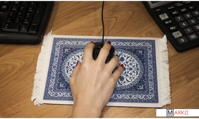 Декоративный мини-ковёр из нетканого материала можно использовать не только как коврик для компьютерной мыши, но и в качестве подставки для царапающих поверхность предметов, подложки под вазы, статуэтки и другие украшения интерьера. Не скользящая прорезиненная основа, в точности скопированный классический ковровый узор.