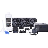 Жидкостное охлаждение с радиаторным блоком для внутреннего или наружного крепления с прозрачным хладагентом.• Радиатор медный NexXxoS XT45 360 мм;• Резервуар Eisfach;• Помпа Eispumpe VPP755;• Водоблок Eisblock XPX (Intel/AMD);• Вентиляторы Eiswind Silent Edition 120 мм (3 шт.);• Охлаждающая жидкость прозрачного цвета CKC Cape Kevin Catchher 1000 мл;• Фитинг (8 шт.);• Фитинг 90° (2 шт.);• Трубки 13/10 мм (3 м);• Воронка (1 шт.);• Инструмент для обрезки шлангов;• Кабели питания;