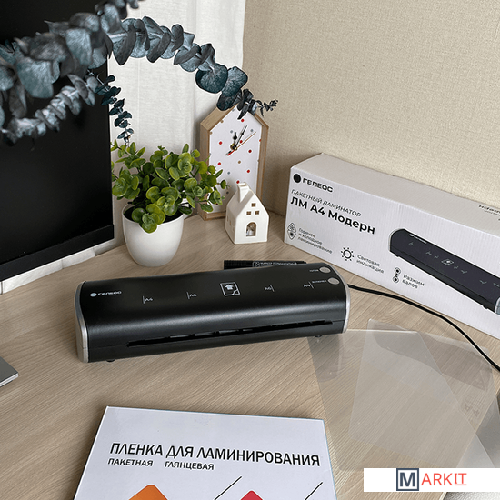 Пакетный компактный 2-х валовый ламинатор ГЕЛЕОС ЛМА4 Модерн для ламинирования документов формата А4 и меньше. Эта внешне лаконичная и дизайнерская модель ламинатора разместится в любом уголке помещения и создаст свое настроение в интерьере. Замечательно подойдет для детских учреждений, таких как детский сад и школа, в комнате у ребенка. Двухцветный, гармоничный и интересный по форме аппарат займет достойное и небольшое место на столе в офисе. Форма ламинатора обтекаемая, без углов. Заламинирует необходимый материал со скоростью 300 мм/сек. Фиксированная температура горячего ламинирования позволяет использовать пленки плотностью от 75 до 150 мкм. Чем больше мкм в пленке, тем жестче будет готовый материал. Так же, данная модель имеет функцию холодного ламинирования, что пригодится для ламинирования слишком чувствительных поверхностей: официальные документы с печатями и подписями, свидетельства, паспорта и тд. Очень простое и удобное управление. Рабочая панель на русском языке. Световая индикация вовремя предупредит о готовности валов к работе. Всего 4-5 минут нагрева и можно ламинировать документы. Максимальная толщина ламинирования документов 0,6 мм. В случае необходимости извлечь материал из ламинатора - предусмотрена функция разжима валов. Все это сэкономит ваши нервы и время в использовании ламинатора. Что можно заламинировать? Все, что толщиной до 0,6 мм (учитывая пленку) и находится на бумаге. Ламинирование детских рисунков - поможет защитить его на долгие годы и сделает краски еще более насыщенными. Ламинирование учебных пособий, карточек со словами, памяток, презентаций – очень актуально для занятий с маленькими детьми и не переживать, что карточки порвутся или испортятся. Идеальное решение для воспитателей и учителей. Ламинирование фотографий – защитит их от выгорания, влаги. Вы сможете оформить свой фотоальбом. А бывают ситуации, в которых фотографии, информационные листы, объявления, меню ресторанов и кафе, указатели используются на улице, и в таких случаях ламинирование приходится как нельзя кстати.