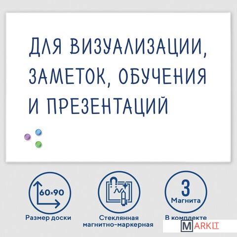 Markit » Офисные доски, флипчарты » Магнитно-маркерная доска BRAUBERG стеклянная 60x90 см (белый)