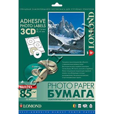 Медиа наклейка LOMOND A4, 3шт./л.(41мм/144мм), ГЛЯНЦЕВАЯ (GLOSSY), 25 листов, односторонняя, для струйной печати (2411023) Код: 16733