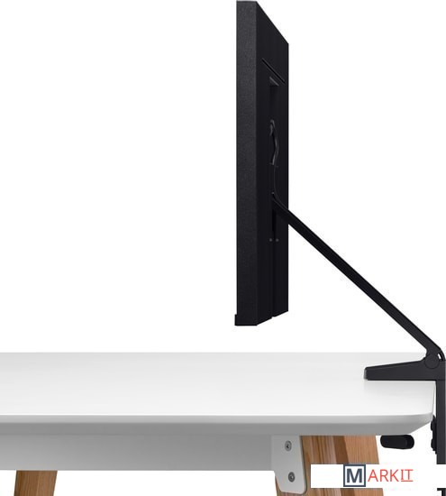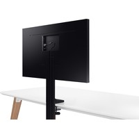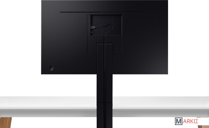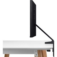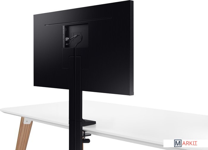 Монитор Samsung Space Monitor позволяет максимально полно использовать площадь рабочей поверхности. Благодаря отсутствию традиционной подставки, монитор можно отодвинуть от себя к краю стола, освободив его площадь для документов или аксессуаров. Для работы просто потяните монитор Space Monitor к себе и отрегулируйте его положение для комфортной работы. Модель крепится с помощью струбцины с ходом винта 90 мм, что дает возможность закрепить монитор на столах с толстой столешницей. Кабели укладываются в специальные углубления в подставке.