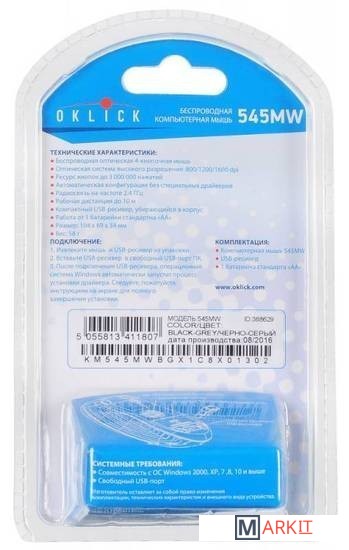 Markit » Компьютерные мыши » Мышь Oklick 545MW (черный/серый) [368629]