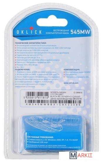 Markit » Компьютерные мыши » Мышь Oklick 545MW (черный/синий) [368630]