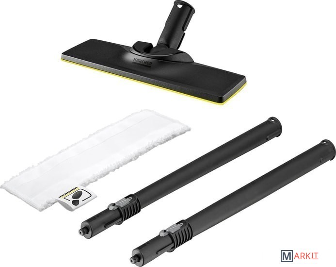 От ручного пароочистителя в паровую швабру 2 в 1 за несколько секунд: c практичным комплектом для пола EasyFix для пароочистителя SC 1 это возможно. С помощью застежки-липучки присоединить микрофибру к насадке для пола, насадку присоединить к двум трубкам (по 0,5 м каждая) и к пароочистителю SC 1 – после чего можно начать уборку пола. Комплект для уборки пола EasyFix входит в комплект поставки пароочистителя SC 1 EasyFix.
