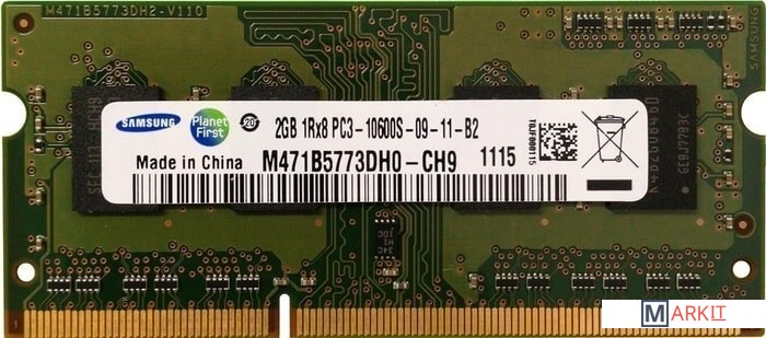 Markit » Оперативная память » Оперативная память Samsung 2GB DDR3 SODIMM PC3-10600 M471B5773DH0-CH9