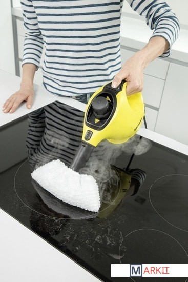 Компактный пароочиститель с комплектом для уборки пола 2-в-1 SC 1 EasyFix от Karcher универсально применим во всем домашнем хозяйстве и выполняет уборку без использования каких-либо чистящих средств. При тщательной очистке пароочистителем Karcher уничтожается 99,99% распространенных в быту бактерий на твердых поверхностях. Благодаря своим компактным размерам аппарат идеально подходит для быстрой и тщательной промежуточной уборки. После уборки его можно хранить непосредственно в месте применения - он занимает совсем мало места. О чем бы ни шла речь - сантехнические арматуры, плитка, варочная панель, вытяжка или мельчайшие щели и углубления - мощный пар и широкая программа аксессуаров обеспечат безупречную чистоту. Комплект для уборки пола EasyFix моментально превращает практичный ручной пароочиститель в паровую швабру. Стойкие загрязнения и жировые отложения удаляются в два счета.