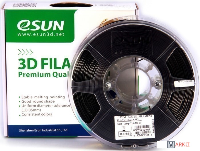 Markit » Расходные материалы для 3д принтера » Пластик eSUN ABS 1.75 мм 1000 г (черный)
