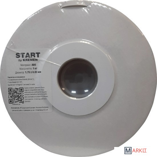 Markit » Расходные материалы для 3д принтера » Пластик Kremen Start ABS 1.75 мм 1000 г (белый)