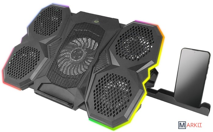 Особенности - мощность воздушного потока: 65 CFM- скорость вращения большого вентилятора 1200 об/мин- регулируемая скорость маленьких вентиляторов: 2600-3000 об/мин- дополнительная боковая подставка для смартфона