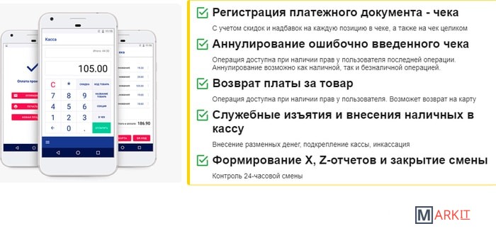 ДЛЯ РАБОТЫ НЕОБХОДИМЫ СМАРТФОН И ПРИНТЕР ДЛЯ ПЕЧАТИ ЧЕКОВ.- Универсальное решение для курьеров и небольших точек продаж- Возможность подключения mPOS-терминала- Не требует фискального регистратора- Возможность отправлять чеки в электронном виде- Работает на устройствах, имеющих доступ в сеть Интернет