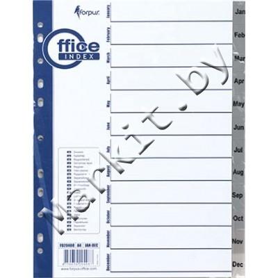 Разделители для регистраторов пластиковые Forpus, 12 л., индексы по месяцам (Jan-Dec) Код: 32590